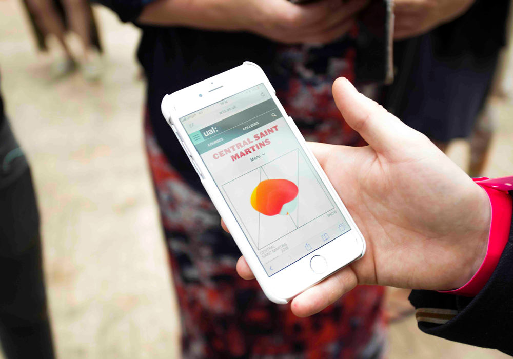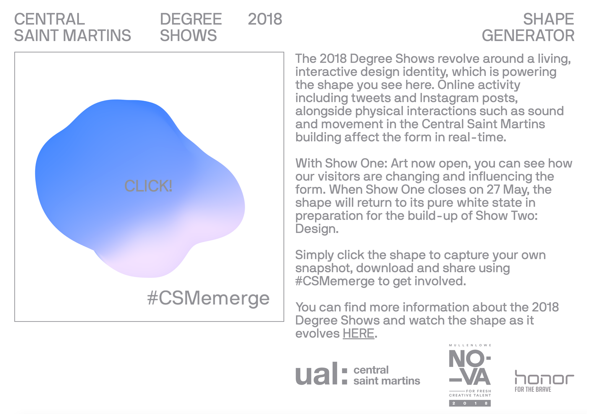 The interactive identity creates a living embodiment of the energy and excitement created by students, staff and visitors alike and captures the buzz that happens in the build-up and across the degree shows.