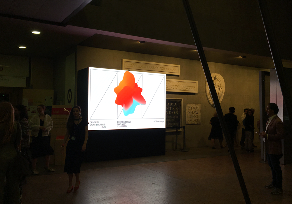The Central Saint Martins Degree Show 2018 Identity is formed on the foundations of the emerging creative talent from CSM. The shape represents the highly diverse nature of CSM students and the creativity that is on exhibition across a range of disciplines.