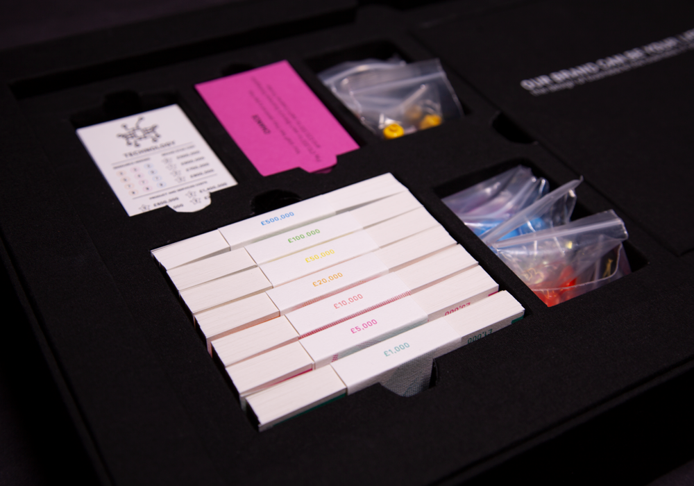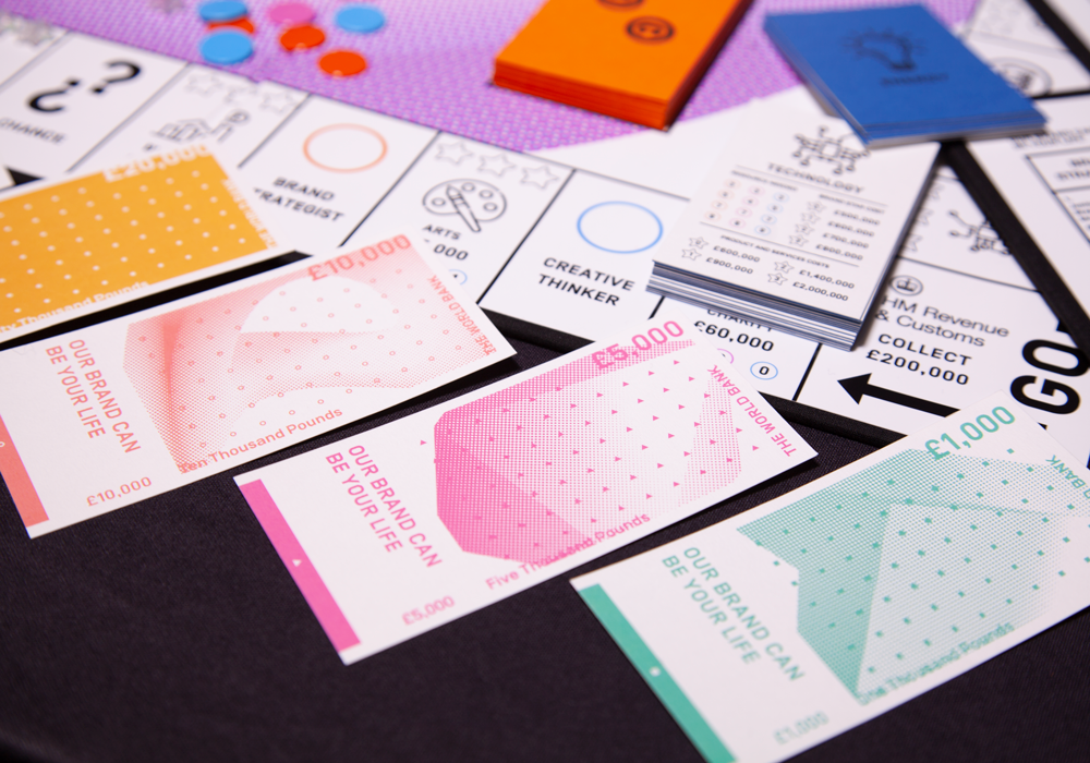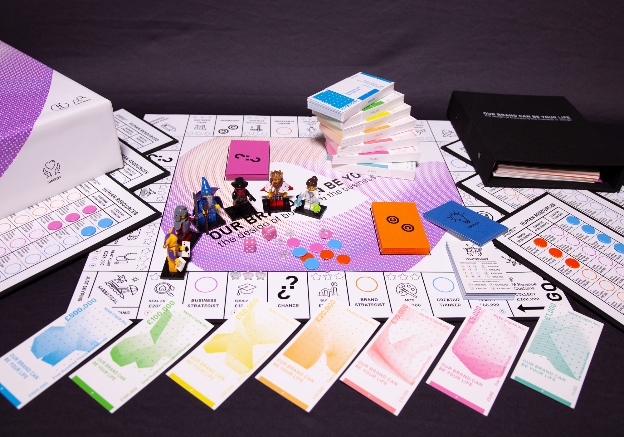 Our Brand Can Be Your Life is the board game in which players can build a modern-day branding agency. To do this, your agency will have to hire resources, pitch and compete for new potential clients and spend and invest in industries to help your own brand and business grow. Players get to dictate how they run their branding agency and the direction they wish to take. They do this by hiring resources from three categories: Brand Strategy, Business Strategy and Creative Thinking.