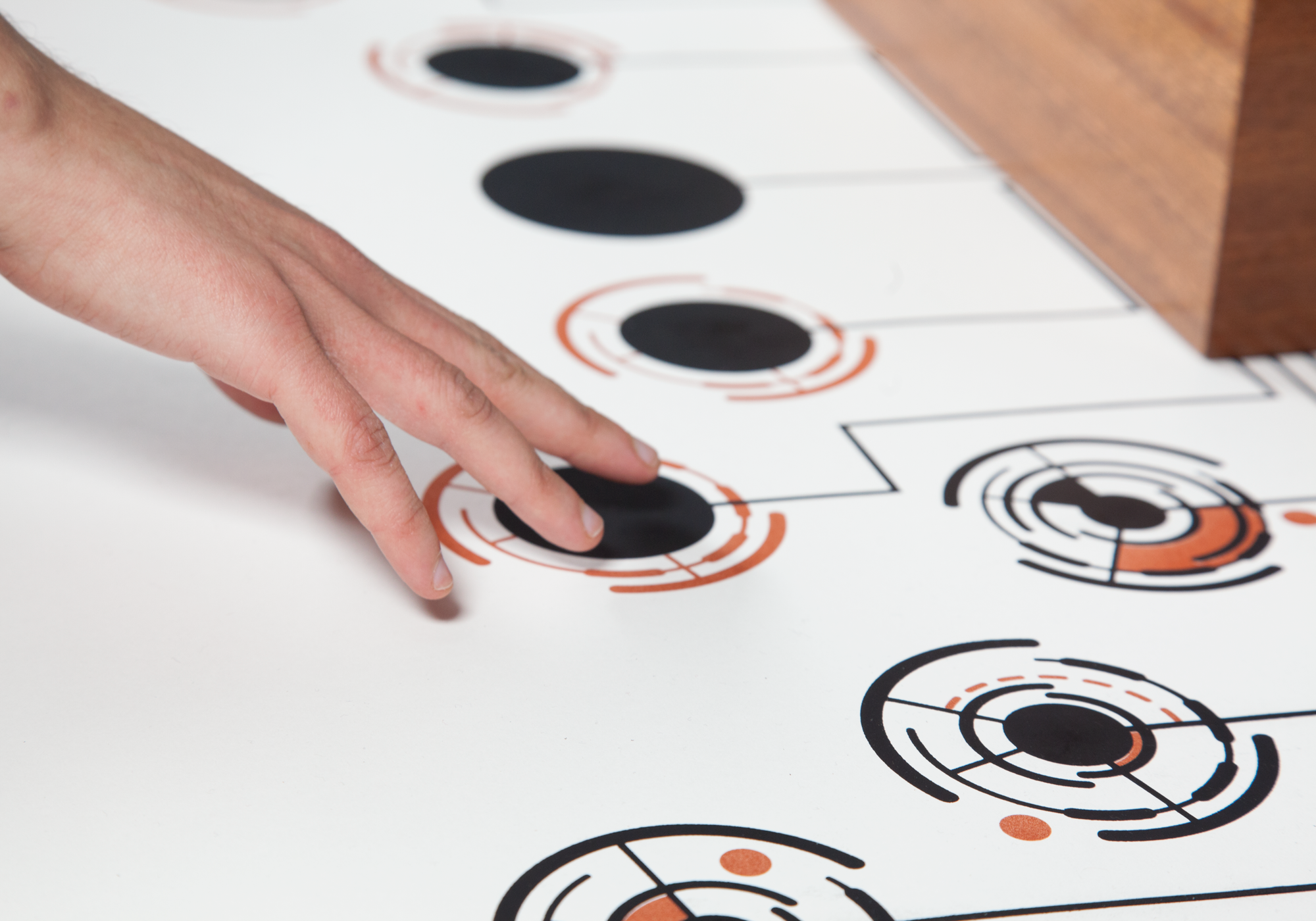 Touch sound is a digital and analogue music creation surface focused on touch and surface interaction. For the digital side, I used a Bare Conductive Touch, powered by Arduino, which uses conductive ink to trigger midi sound samples in Ableton.