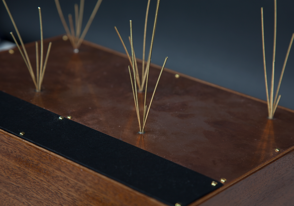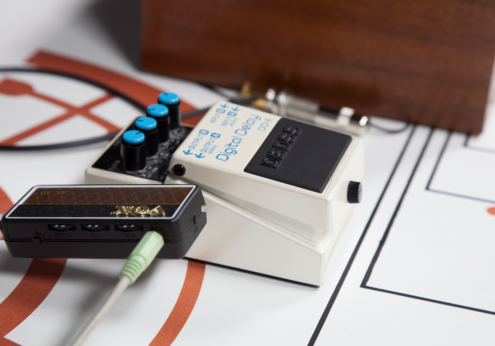 Along side an analogue ambient noise box using contact microphones to capture real time interactions with the exposed guitar strings to create soundscapes. When combined, it creates unique and unreproduceable compositions – all at your finger tips.